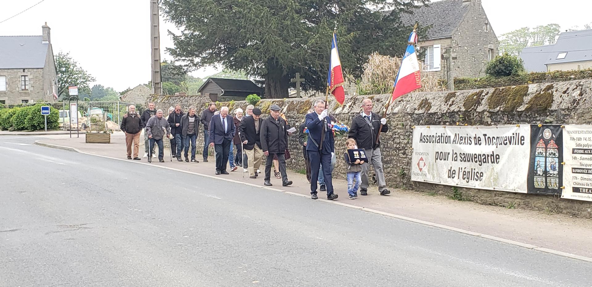 Cérémonie du 8 mai officiée par Mme Ducouret maire de Tocqueville et remise de médailles à Mr Deloeuvre et Mr Dorey effectuées par Mr Onfroy président des anciens combattants de Tocqueville.